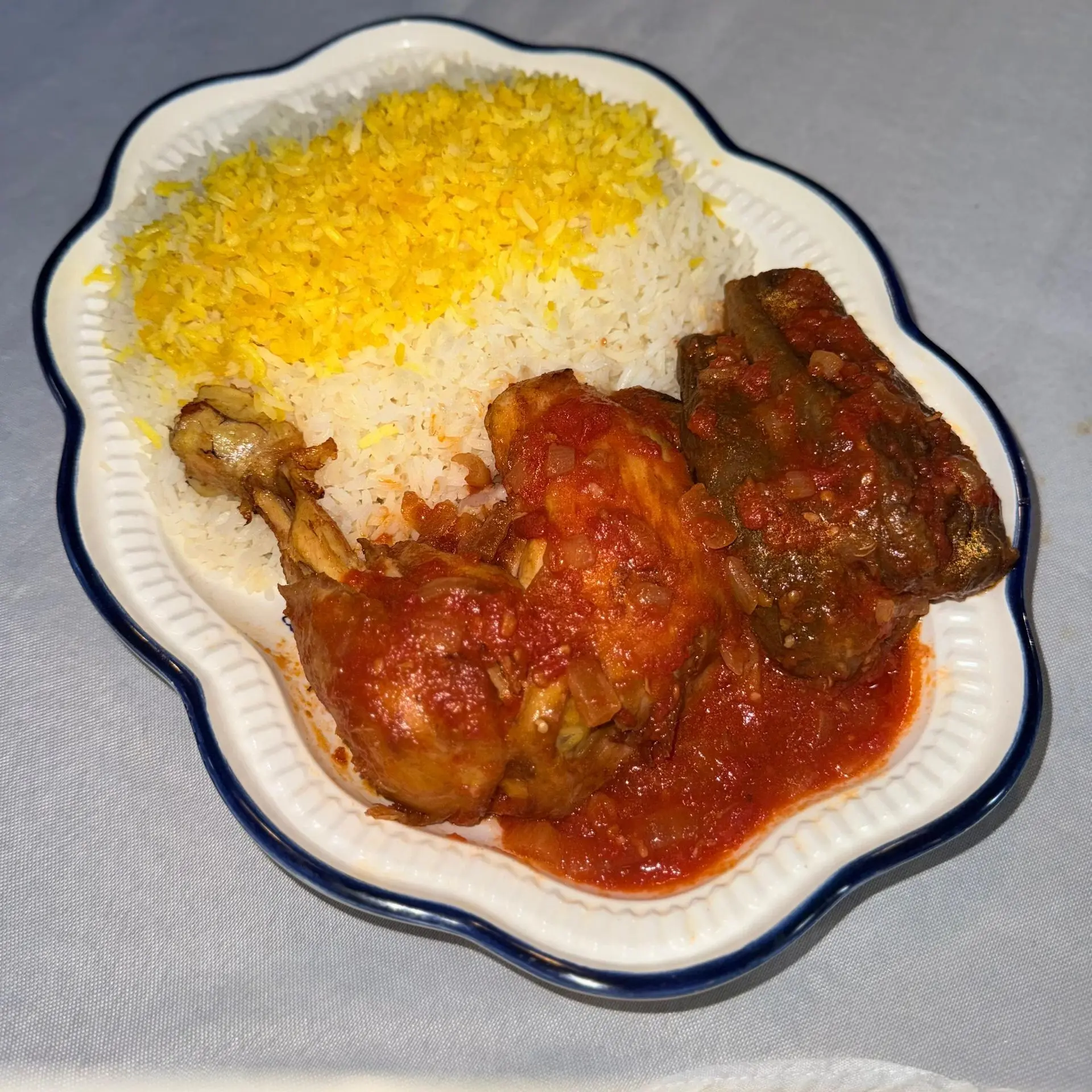 چلو خورشت مرغ با سیب زمینی سرخ شده